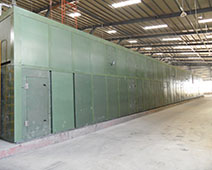 本機(jī)型采用大流量橫向循環(huán)離心式熱風(fēng)機(jī)。其熱循環(huán)方式設(shè)計(jì)借鑒德國(guó)先進(jìn)干燥機(jī)技術(shù)優(yōu)點(diǎn),新型鋼鋁復(fù)合翼片散熱器配專用矩形可變截面噴箱噴孔,使吹向左右單板表面的風(fēng)速相同。石墨 -